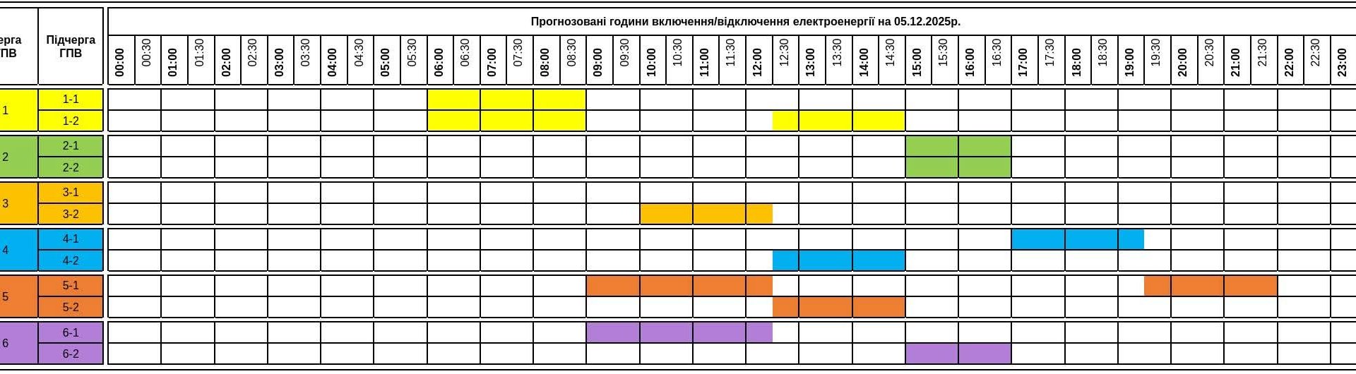 Черга 6 "відпочиватиме" з 11:30 до 14:00 та повторно у вечірній пік з 16:30 до 19:00.