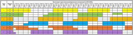 Нижче наведено розклад відключень для всіх шести основних черг (та їхніх підчерг) протягом доби: