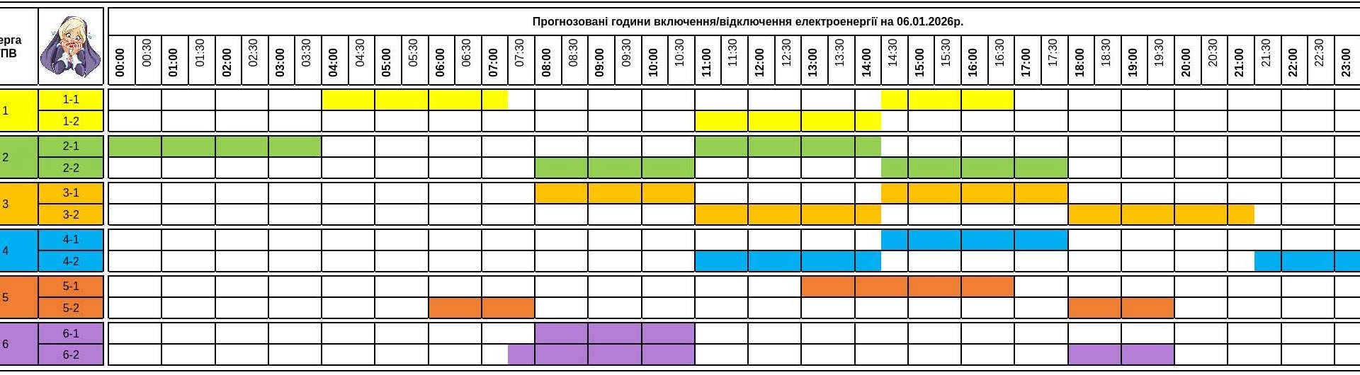 У вівторок, 6 січня 2026 року, на території Закарпатської області продовжують діяти графіки погодинних включень та відключень електроенергії. Енергетики оприлюднили детальний розклад для всіх черг, аби споживачі могли заздалегідь планувати свій день.