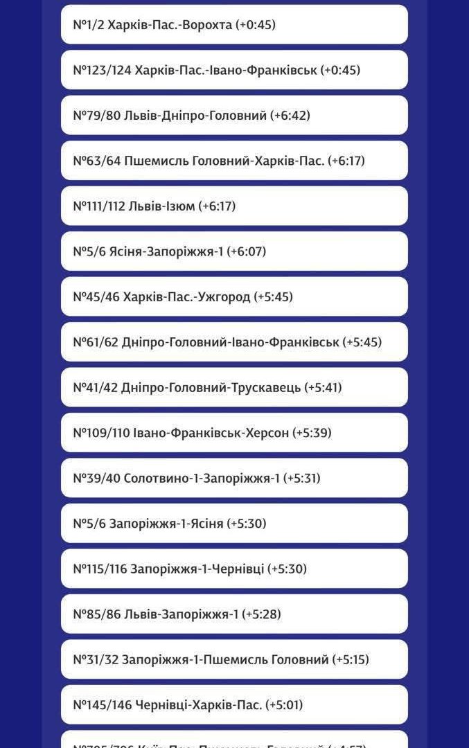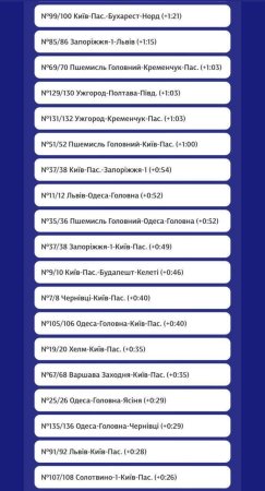 Важливо для пасажирів: Повний перелік затримок у реальному часі можна відстежувати на сервісі uz-vezemo.