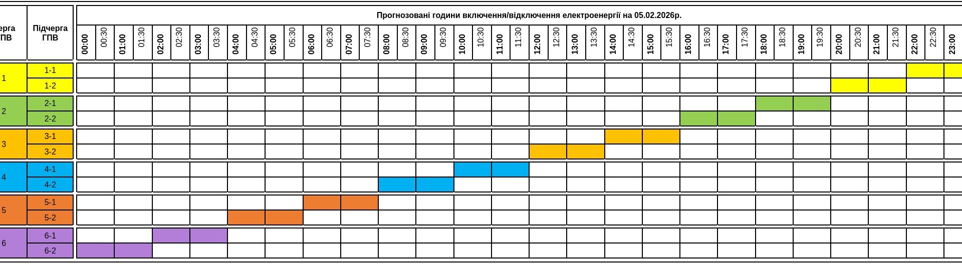 Графік відключень світла Закарпаття на четвер, 5 лютого, застосовуватиметься згідно з розпорядженням диспетчера НЕК «Укренерго». Обмеження електропостачання є вимушеним кроком для стабілізації системи після масових ракетно-дронових атак на енергетичну інфраструктуру.