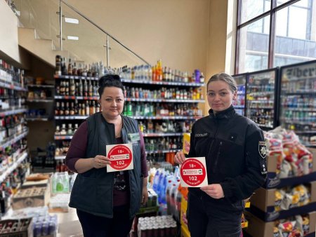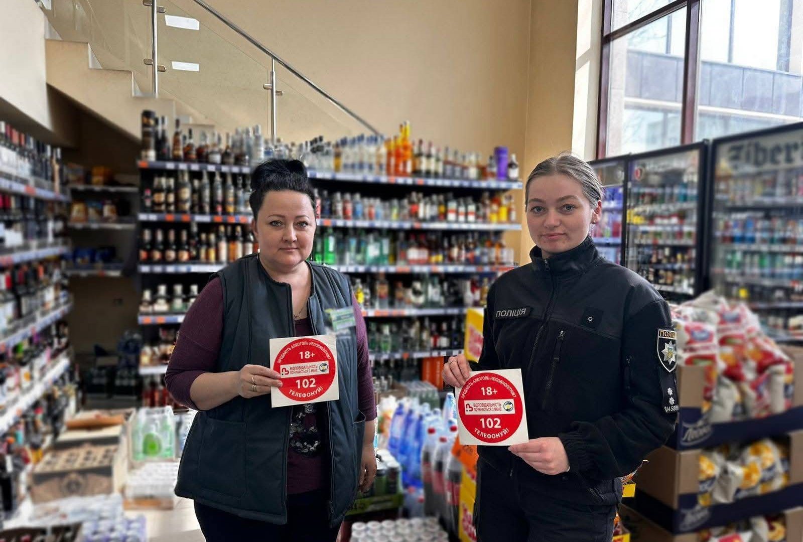 Під час візитів у закладах торгівлі поліцейські розмістили спеціальні інформаційні наліпки, які попереджають покупців та нагадують персоналу про вікові обмеження.