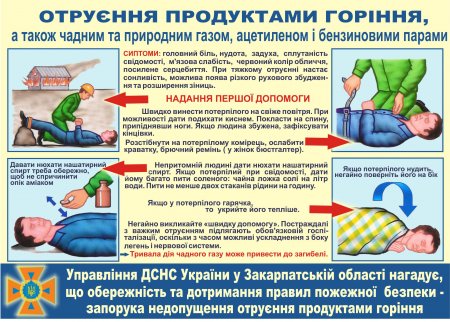 У зв’язку з цим, рятувальники Закарпаття вчергове закликають вас пам’ятати про небезпеку отруєння чадним газом. Основними симптомами отруєння є: головний біль, блювота, запаморочення, біль у грудях, дратівливість, сплутаність свідомості, порушення координації рухів, синюшний або яскраво-червоний відтінок шкіри, втрата свідомості.