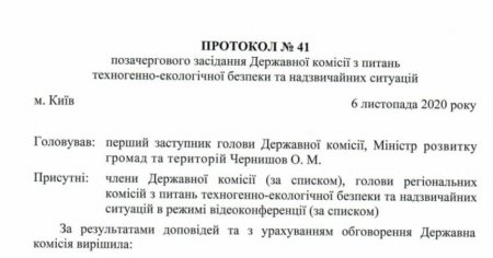 Оприлюднили Протокол засідання Державної комісії з питань ТЕБ та НС