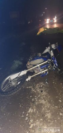 7 листопада увечері до поліції надійшло повідомлення про дорожньо-транспортну пригоду у селищі Великий Бичків. За викликом прибула слідчо-оперативна група, працівники якої встановили, що 19-річний мотоцикліст здійснив наїзд на 49-річну місцеву жительку, яка штовхала велосипед. Від отриманих травм жінка померла на місці аварії.