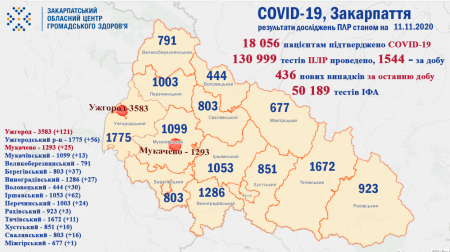 На Закарпатті за добу виявлено 436 нових випадків COVID-19 за добу та 5 пацієнтів померло