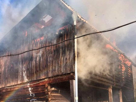 Повідомлення про першу пожежу надійшло до Служби порятунку 14 листопада о 10:43. На вул. Б.Хмельницького у с. Чорна Тиса загорілася надвірна споруда, в якій зберігалося сіно. Господарі обійстя були вдома, тож саме вони помітили вогонь і навіть намагалися самостійно його загасити, однак безуспішно. Бійці пожежно-рятувальних підрозділів з Рахова та смт Ясіня об 11:27 локалізували пожежу на площі 96 кв.м та о 12:25 остаточно її ліквідували. Від стихії постраждали шиферна покрівля та 4 тонни сіна.