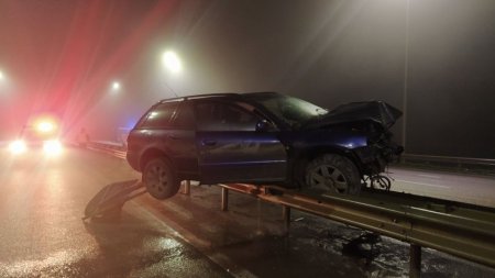 На Рівненщині легковик вилетів на відбійник і залишився зверху. Інцидент трапився о пів на шосту ранку 19 грудня на трасі Київ-Чоп біля села Дорогобуж, що за 25 кілометрів від Рівного у напрямку Києва. У пресслужбі поліції області Суспільному повідомили, що за кермом легковика “AUDI A4” був 23-річний житель міста Городенка Івано-Франківської області.