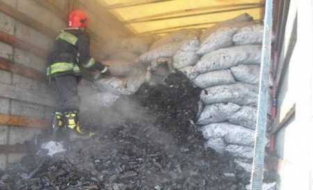 Тут на вантажному автомобілі Сканія загорілося деревне вугілля.