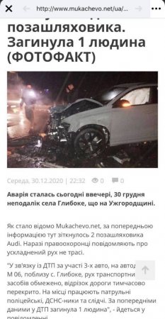Один з закарпатських телеграм-каналів повідомляє, що в позашляховику Audi знаходився син народного депутата з Мукачева. Непрямим доказом цього є те, що публікацію про аварію було розміщено на сайті “Мукачево.нет”, а пізніше її видалили з сайту.