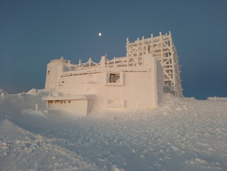 Станом на 08:00, 02.01.2021р. на г. Піп Іван Чорногірський ясно, вітер південно-західний, 8-9 м/с., температура навколишнього середовища -8°С.