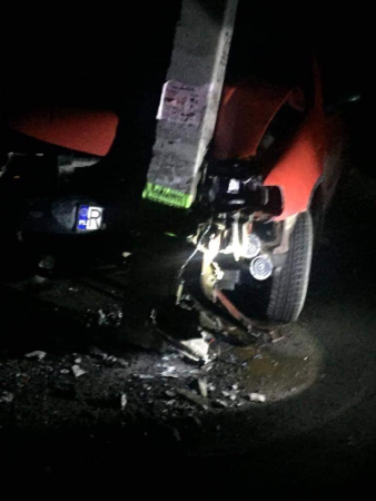 Вночі у Виноградові водій врізався у електроопору (Фото)