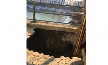 Земля провалилася відразу за кіоском ліворуч від пішохідного мосту.