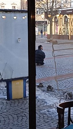 Очевидці розповідають про невідомого чоловіка, який на площі Миру поблизу Ратуші чіпляється до людей. Неадекватна поведінка чоловіка лякає дітей, адже той сидить на землі або падає на коліна перед дітьми.