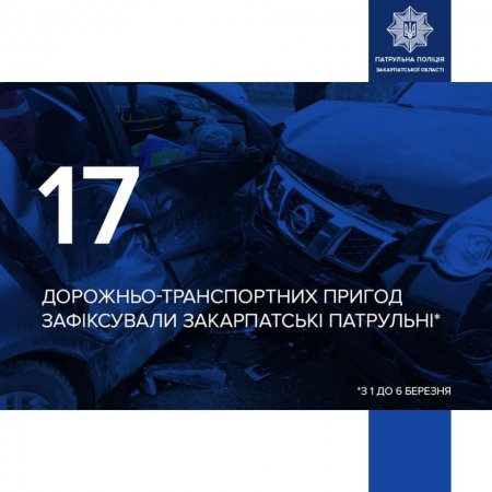 Протягом короткого відрізку часу з 1 до 6 березня зафіксували 17 дорожньо-транспортних пригод.