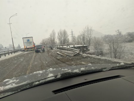 Відомо, що на вулиці Автомобілістів на мості фура в’їхала у відбійник. Очевидці у місцевій вайбер-спільноті поширили фото аварії.