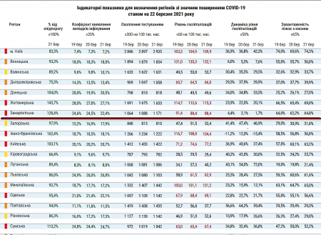 Станом на 22 березня Закарпаття залишається в червоній зоні карантину – МОЗ України