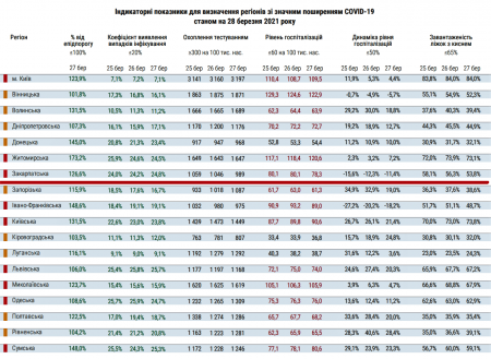 Згідно даних МОЗ України, станом на 28 березня Закарпаття, залишається в червоній зоні карантину.