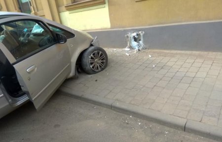 В Ужгороді жінка з дитиною на автомобілі врізалась у будинок (Фото)