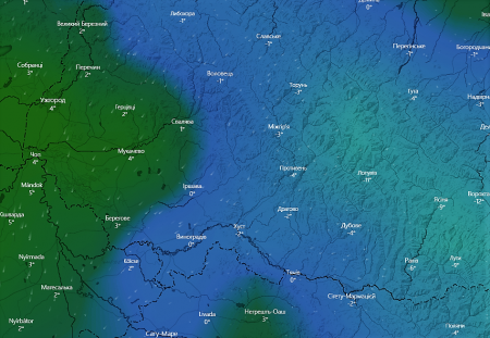 Згідно даних метеосупутників погоди наступної ночі на Закарпатті, температура повітря опуститься до абсолютного мінімуму в гірських районах вона опуститься до рекордної позначки -11 градусів морозу.