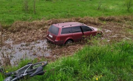 А біля села Зняцьово Великолучківської громади Мукачівського району авто злетіло з дороги в придорожнє багно.