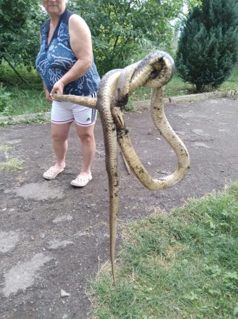 Ймовірно зловленою змією є карпатський полоз, який є не отруйним та занесений до Червоної Книги.