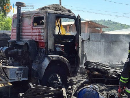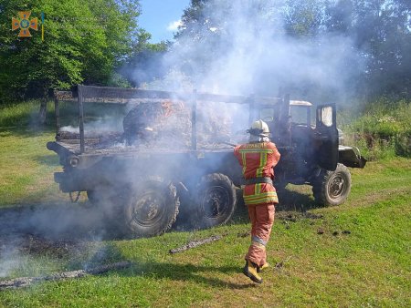 Далі, о 16:33, рятувальники Закарпаття отримали ще один сигнал про загорання вантажного автомобіля – цього разу в с. Монастирець Хустського району. Місцеві мешканці збирали сіно на машині ЗіЛ-131 й уже поверталися додому, коли в урочищі «Поточок» побачили вогонь під кузовом. Вони одразу ж кинулися розгрібати сіно й гасити полум’я підручними засобами. Справу продовжили професійні вогнеборці, які о 17:50 ліквідували пожежу. Від стихії постраждали кабіна й кузов автомобіля, а також 2 тонни сіна.