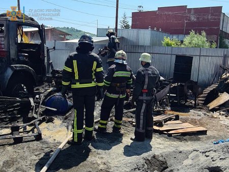 Перше повідомлення надійшло до Служби порятунку об 11:53. У Мукачеві на вул. Пряшівській загорівся вантажний автомобіль КамАЗ-5410 на території підприємства з виготовлення бруківки. Працівники саме проводили роботи надворі, коли побачили вогонь. Вони одразу ж викликали вогнеборців, які о 12:32 повністю ліквідували пожежу. Полум’я пошкодило кабіну й моторний відсік вантажівки та знищило 8 європіддонів.