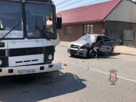 Близько 14-ої години у Хусті по вулиці Львівській водій легкового автомобіля марки “Шевроле” на швидкості врізався у рейсовий автобус з людьми.