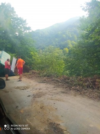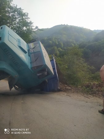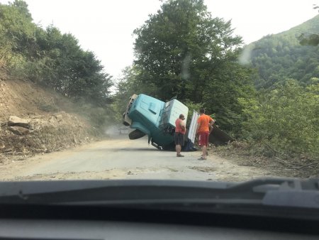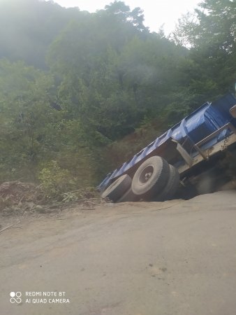 На Рахівщині у селі Ділове трапилась надзвичайна подія. Грузовий автомобіль збираючись розвернутися провалився у прірву яка заввишки до 50 метрів.