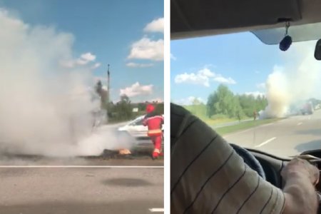За його словами, по дорозі розкидані шматки шини, можливо, саме вона лопнула та призвела до перекидання та загорання автомобіля.