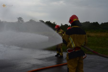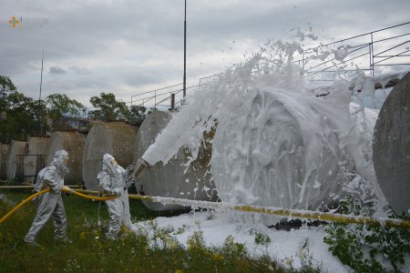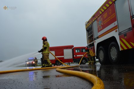 Вогнеборці відпрацювали алгоритм дій під час гасіння пожеж на складах з паливно-мастильними матеріалами та заходи з охолодження злітної смуги під час аварійної посадки літака.