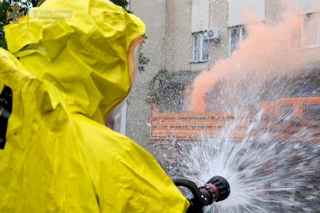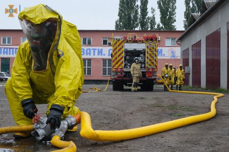 Після цього на учасників чекало практичне відпрацювання заходів щодо ліквідації небезпечної події, пов’язаної з хімічно небезпечними речовинами на відкритій території, за участі фахівців групи радіаційного та хімічного захисту Аварійно-рятувального загону спецпризначення.