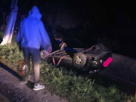 На Тячівщині карколомна ДТП: автомобіль перекинувся на дах (ФОТО)