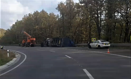 За передньою інформацією водій вантажівки через круті повороти не справився з управлінням та перевернувся, внаслідок аварії ніхто суттєво не постраждав.