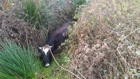1 листопада о 15:17 до Служби порятунку зателефонувала стурбована мешканка Хустщини з повідомленням про те, що її корова впала в кювет у с. Бороняво і не може самостійно вибратися.