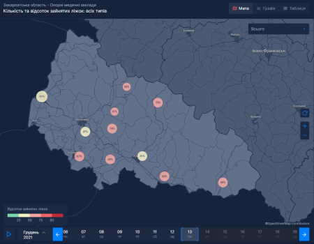 Закарпаття лідирує за кількістю завантаження хворими ліжок в лікарнях