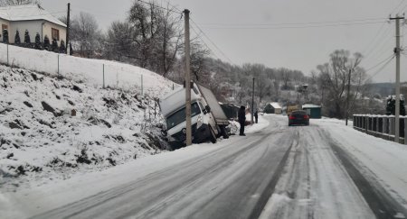 На фото – вантажний автомобіль через ожеледицю з’їхав у кювет в селі Стройне Мукачівського району на щастя ніхто не постраждав, а на іншому ожеледиця в районі села Довге Хустського району.
