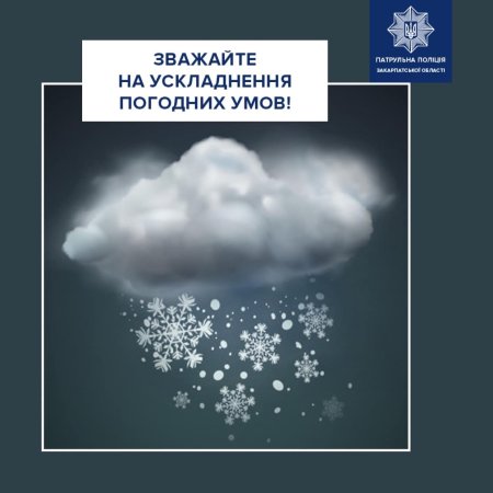 Шановні водії! У зв'язку із ускладненням погодних умов будьте максимально обережними, пильними і не відволікайтесь від керування. Неухильно дотримуйтесь ПДР, стежте за технічним станом свого транспортного засобу.