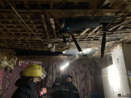 Вогнемм знищено частину домашнього майна та пошкоджено кімнату житлового будинку на площі 10 м2. Причина й збитки встановлюються.