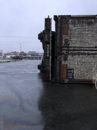 Поблизу гіпермаркету "Епіцентр" на кільцевій розв’язці перекинулась вантажівка.