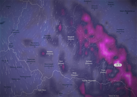 Згідно останніх даних метеосупутників погоди минулої ночі у високогір’ях закарпатських Карпат, місцями температура повітря опускалася до позначки -30 градусів.