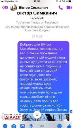 Вона вже зверталася й до голови громади Симканича В.М. Просила про допомогу чоловікові хоча б на період холодів. Проте, чиновник проігнорував звернення.