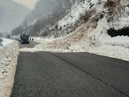 Цього разу на 154-му кілометрі сніг зійшов одразу в двох місцях. Тимчасово був ускладнений рух транспорту.