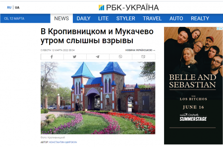 «Як повідомляють очевидці, вранці 12 березня в Кропивницькому та Мукачевому пролунало кілька вибухів. Про постраждалих, а також масштаби пошкоджень поки не повідомляється» - повідомило РБК України.