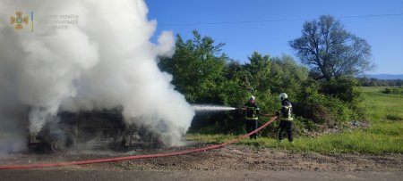 На Закарпатті по дорозі у чоловіка згорів мікроавтобус: Спочатку був вибух