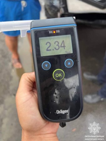 Під час перевірки документів у винуватця автопригоди патрульні помітили ознаки алкогольного сп’яніння. Водій погодився пройти огляд на стан сп‘яніння на місці за допомогою Драгера. Прилад показав 2,34 промілле, що майже у 12 разів перевищує допустиму норму.