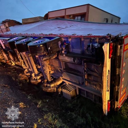 П'яний водій перевернув фуру Мерседес: Прилад показав 2,98 проміле алкоголю в крові (фото)