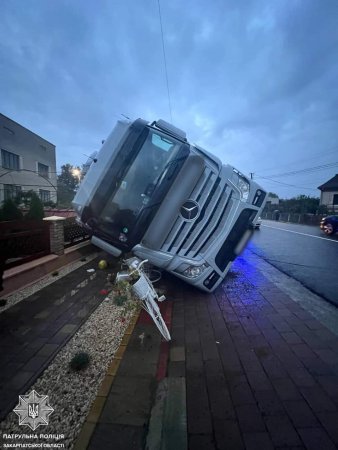 Прибувши на місце події поліцейські з’ясували, що водій вантажівки Mercedes не впорався із керуванням і зіткнувся із огорожею.