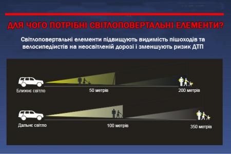 Вночі та у вечірніх сутінках пішоходів та велосипедистів на дорогах та узбіччі, де немає освітлення, водії можуть НЕ ПОБАЧИТИ. Відсутність світлоповертальних елементів(СПЕ) становить загрозу для всіх учасників дорожнього руху.